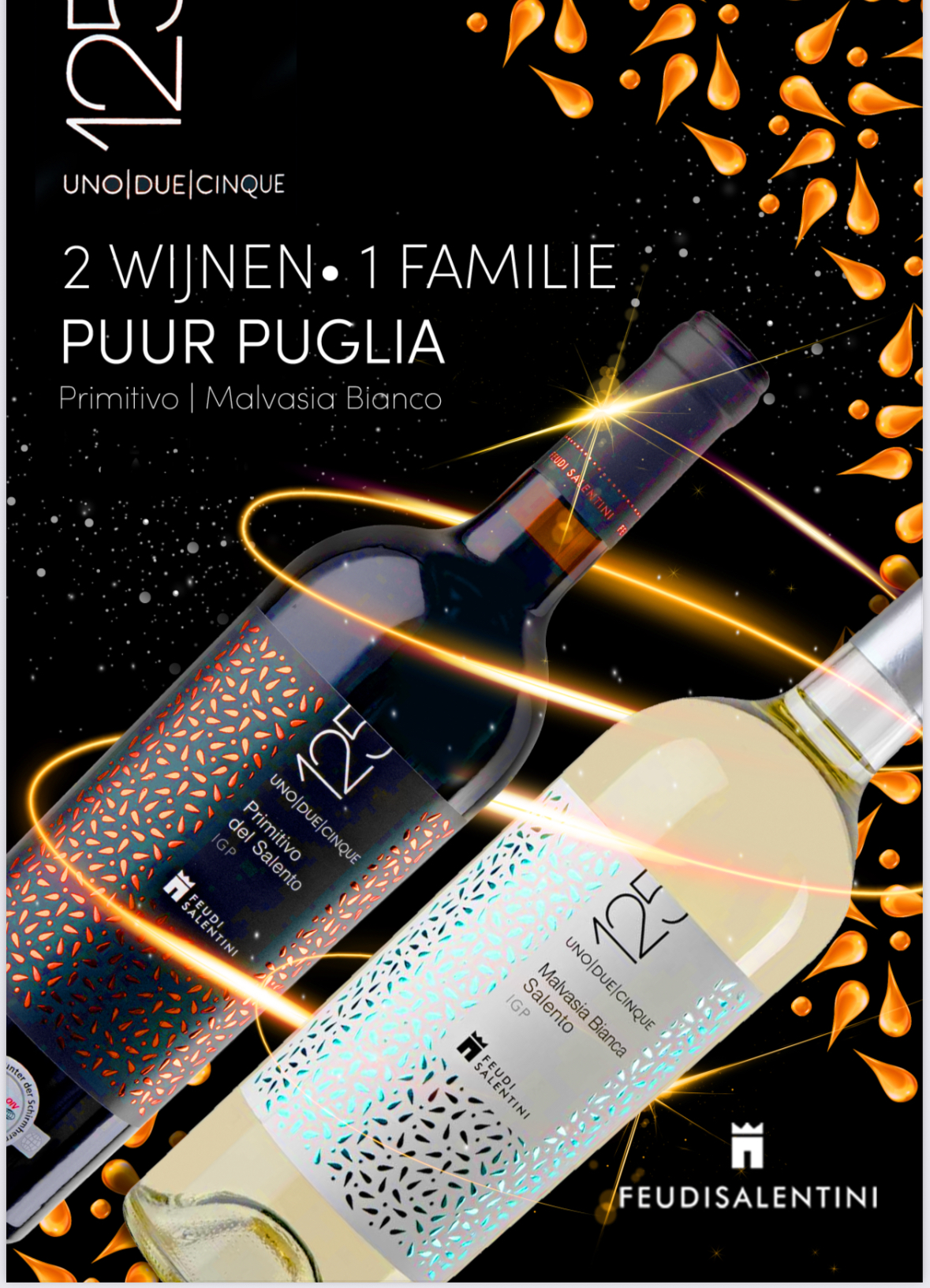De Malvasia Bianca UNO I DUE I CINQUE barst van het primaire fruit. Lychee, tikje muscat met een hele fijne droge smaak. Drink de Malvasia goed gekoeld als borrelwijn, bij antipasti, maar denk ook eens aan Aziatische gerechten.